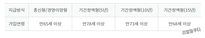 - 종신형/경영이양형 – 만 65세 이상 가입 가능