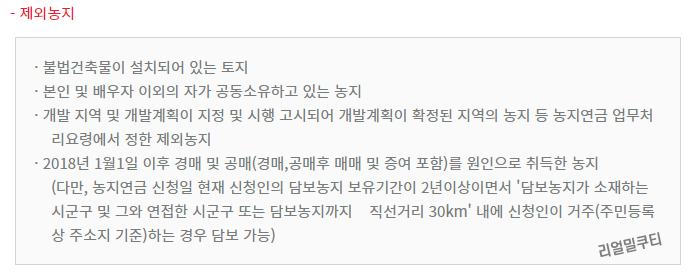 단, 선순위 채권최고액이 담보농지 가격의 15% 미만 농지는 가입가능