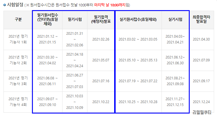 ⭐2021년 1회 필기시험 필기원서접수는 1월 15일 까지였고,