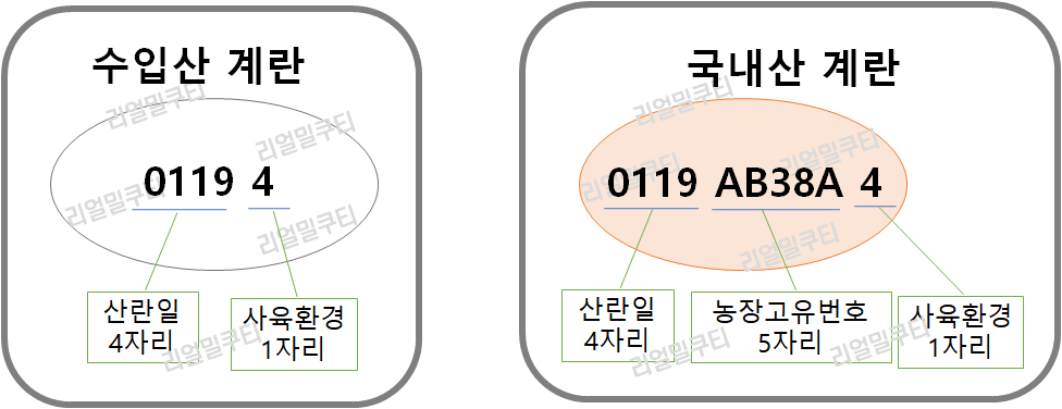 1) 앞에 0119는 국내산과 동일한 산란된 달과 일로 산란일이 1월 19일이라는 것입니다.