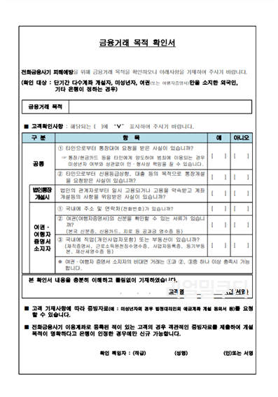 금융거래목적 확인 해야 하는 이유는?