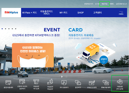 하이플러스 홈페이지에 들어가서 회원가입 후 카드등록을 하실 수 있습니다.