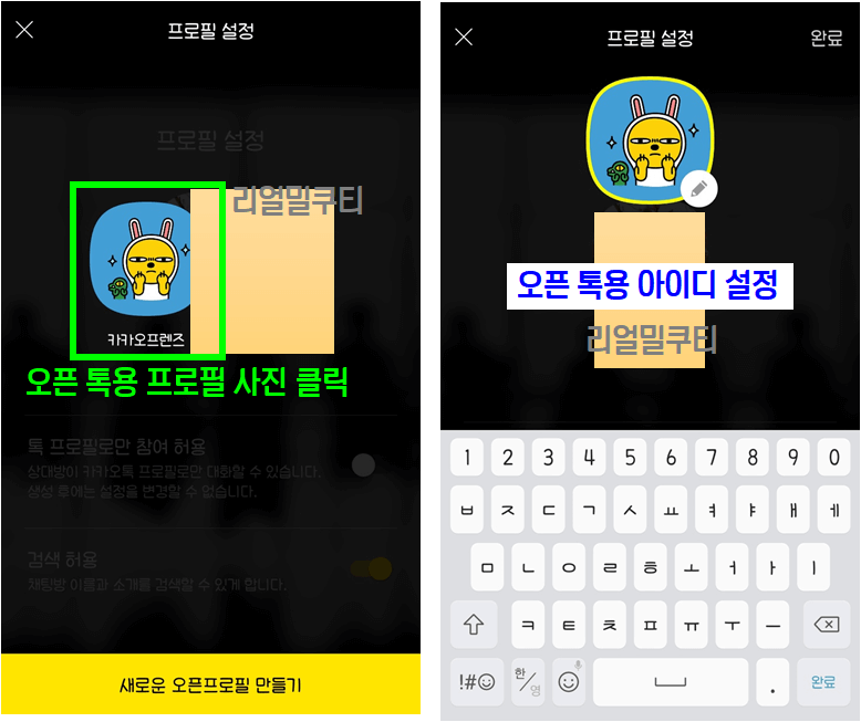 3. 프로필 사진도 원래 내 프로필로 참여할 수도 있지만, 오픈채팅방용 프로필을 새로 만들 수 있습니다.