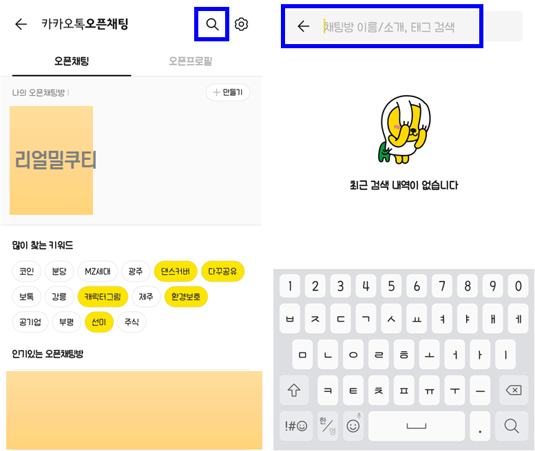 ① 오픈채팅 검색하고 들어가기
