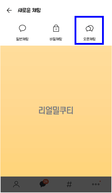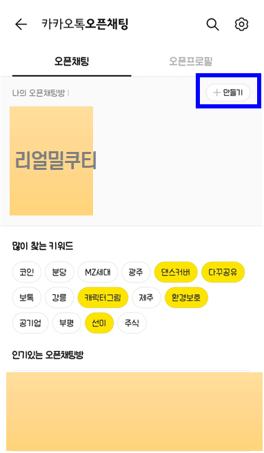 두번째는 내가 원하는 주제에 대한 채팅방이 없을 때 직접 오픈채팅방을 만드는 방법입니다.