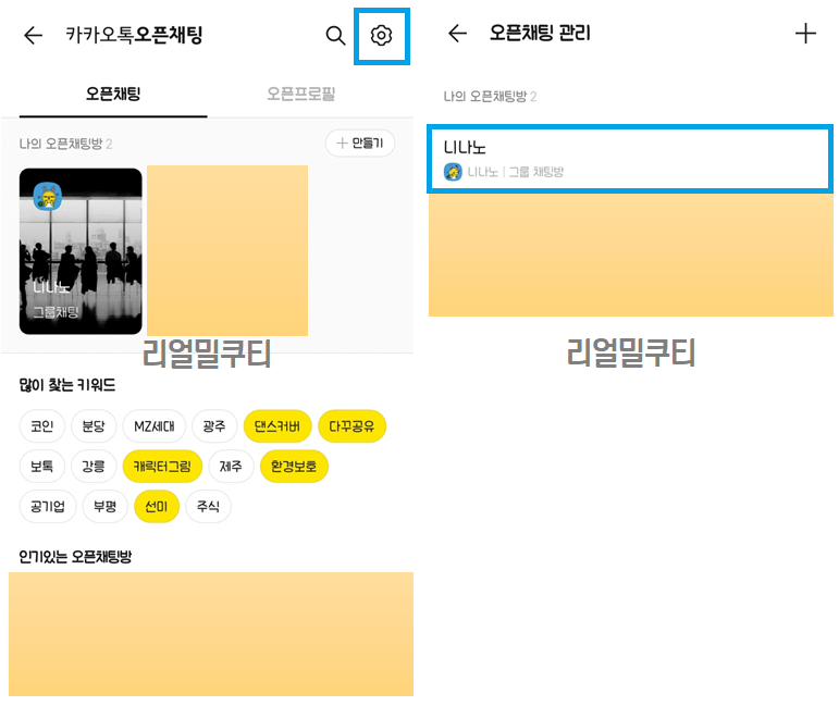 그러면 오픈채팅방 관리가 나옵니다.