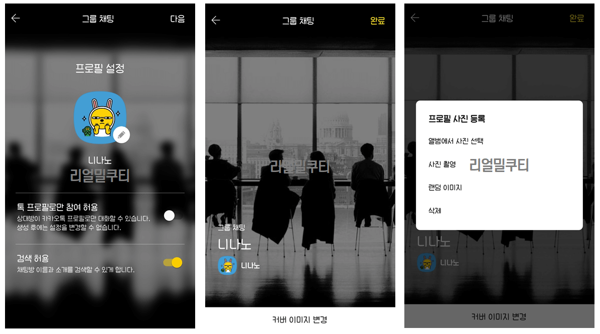 7. 채팅방 성격과 개성에 맞도록 자유롭게 커버이미지를 변경할 수도 있습니다.