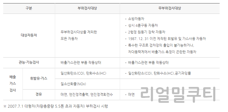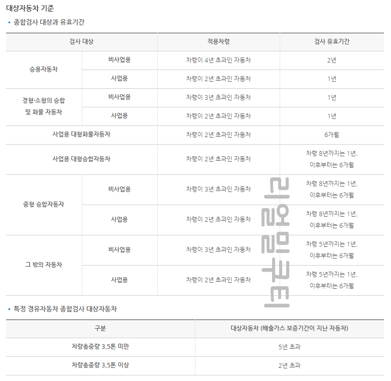 종합검사 : 정기검사 + 배출가스 정밀검사 (또는 특정경유자동차 배출가스 검사)