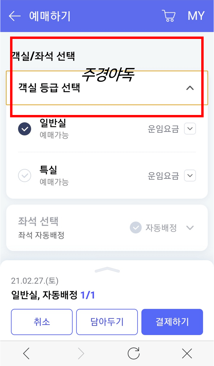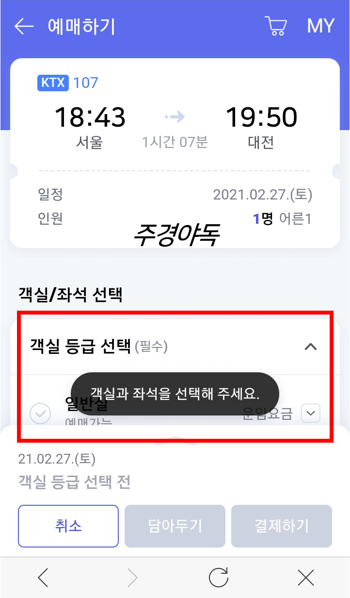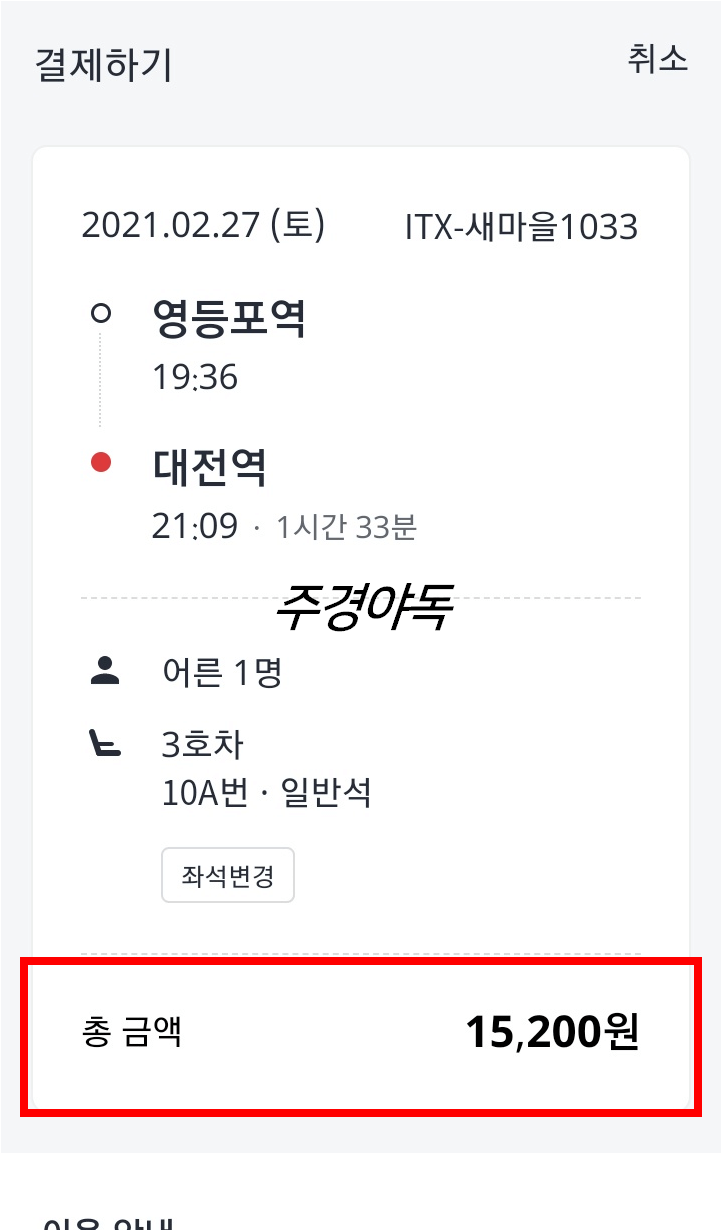 5. 선택한 승차권과 금액이 나오고, 결제를 할 수 있습니다.