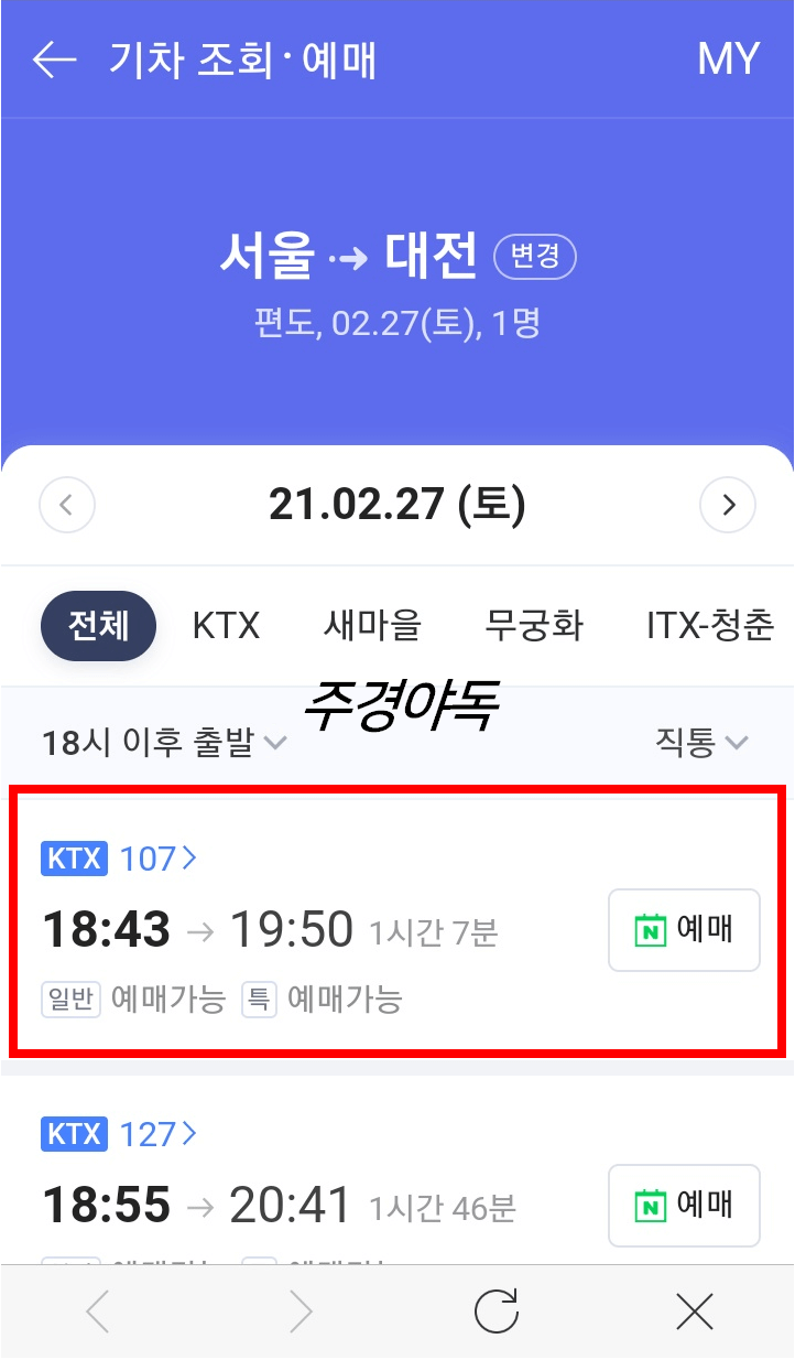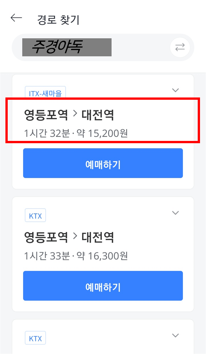 ②네이버 지도로 기차 예매하기(KTX, ITX-청춘, 무궁화, 새마을, 관광열차)