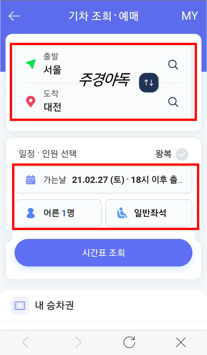 ① 카카오T로 기차 예매하기(KTX, ITX-청춘, 무궁화, 새마을, 관광열차)