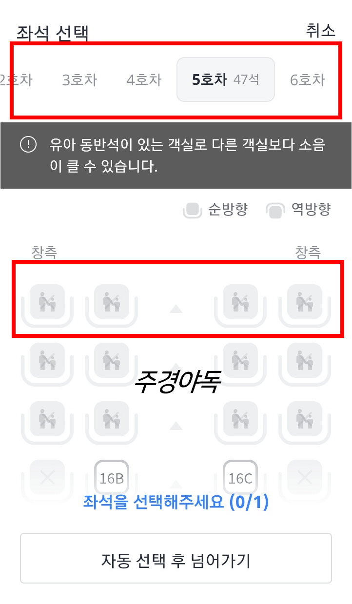 가는날과 시간을 설정하고, 탑승인원과 좌석선택 버튼이 한 화면에 보입니다.