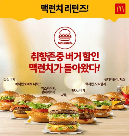 2005년 출시된 할인 메뉴 상품입니다. 일정 시간 동안 맥도날드의 인기 버거세트 메뉴를 할인해 판매하는 상품입니다.
