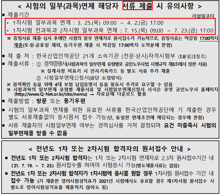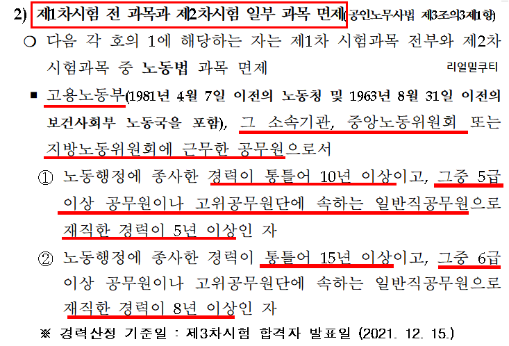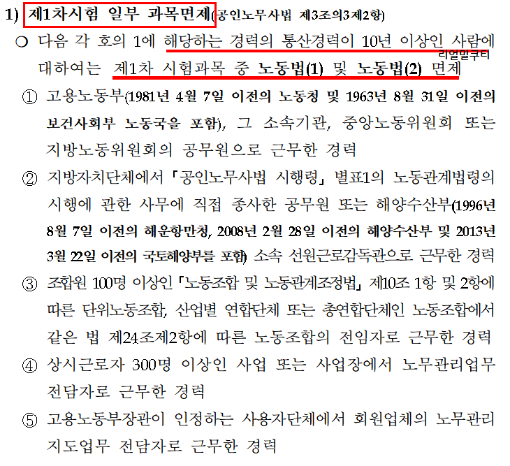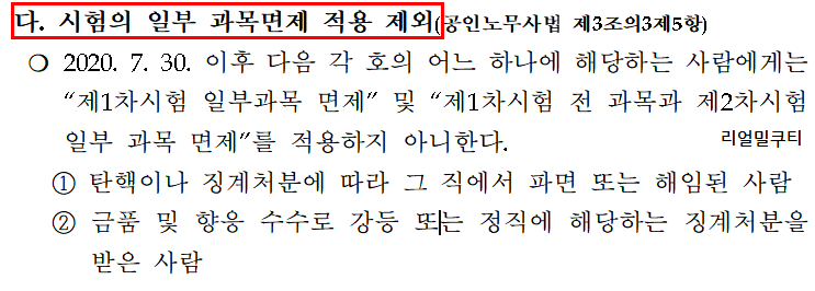 🟠제1차시험 전 과목과 제2차시험 일부 과목 면제