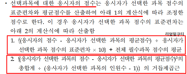 - 선택과목 성적의 세부 산출방법은 다음과 같습니다.