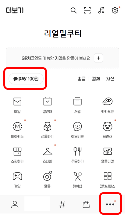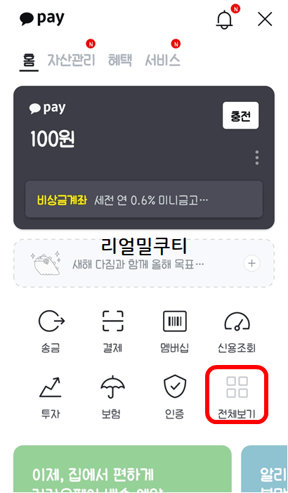카카오페이가 뜨고 하단에 [전체보기]를 선택해주세요.