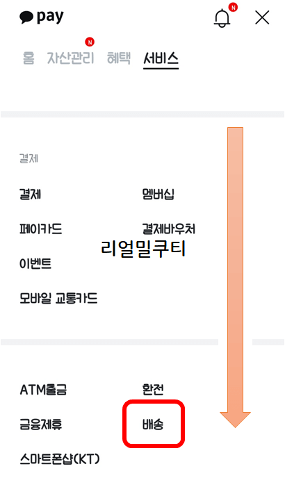 그러면 서비스가 완전 많이 나옵니다. 여기서 아래로 주주룩 내려 [배송]을 선택해주세요.