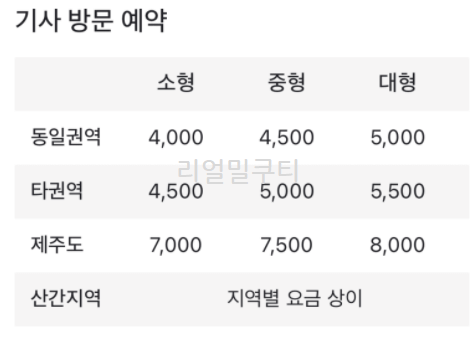 📦기사 방문 예약 가격표