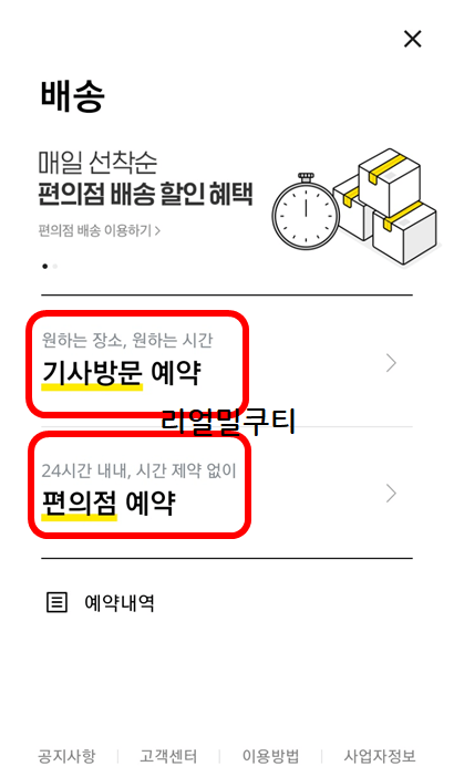 📦기사방문 예약과 편의점 예약이 가능합니다.