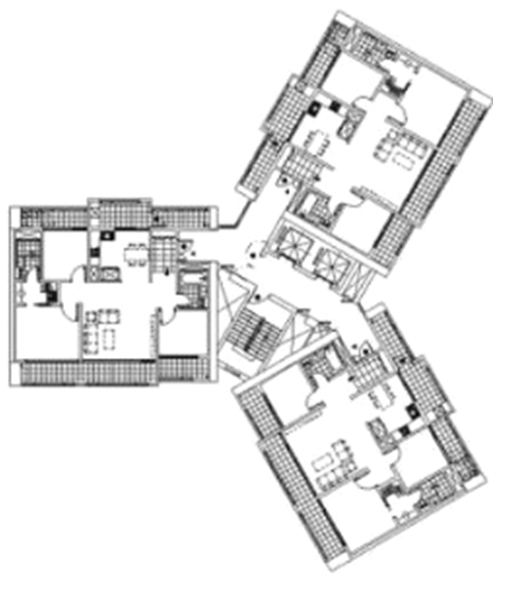 같은층에 3가구 이상이 승강기를 중심으로 배치된 형태를 가진 아파트 입니다.