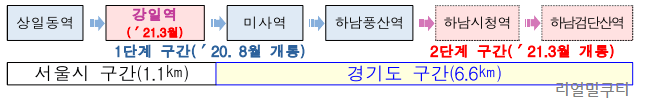 🔷건설 구간: 서울시 강동구 상일동 ~ 경기도 하남시 창우동
