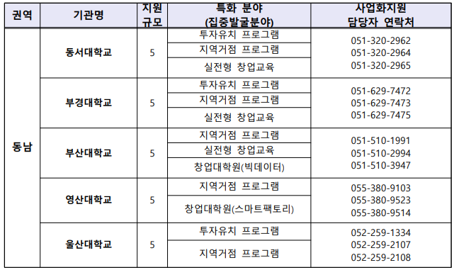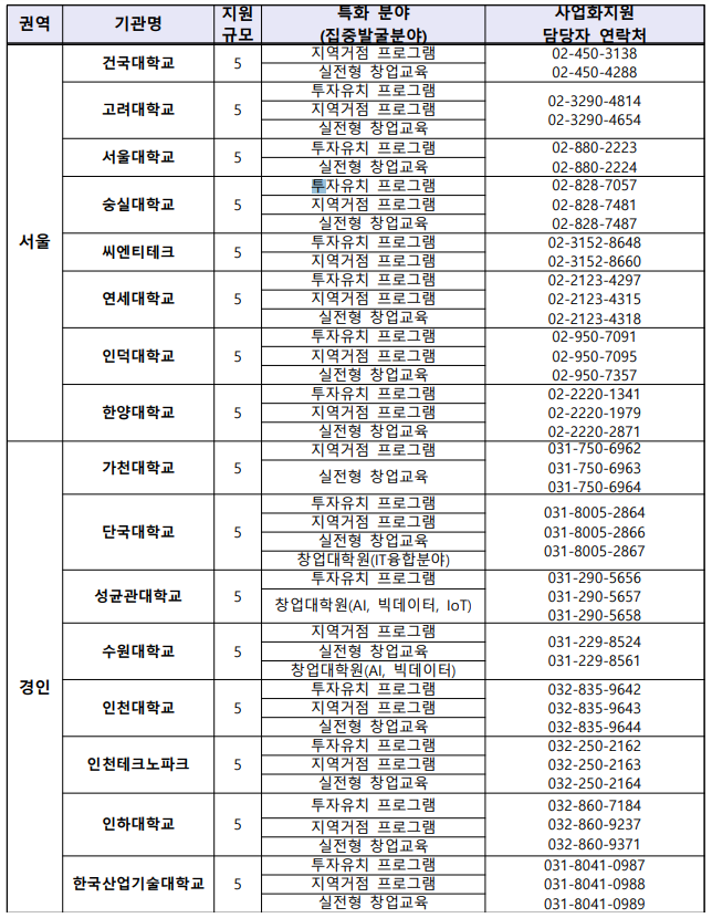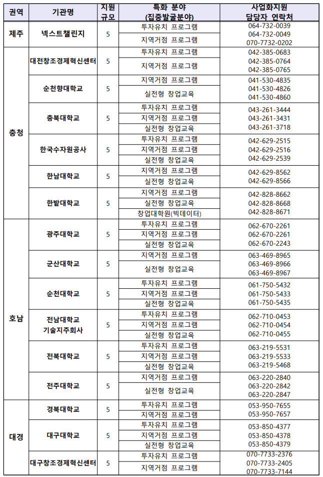 - 자원 내용: 사업화 자금, 특화 프로그램 등