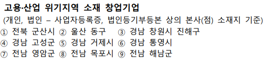 * 고용 및 산업 위기지역 소재 창업기업
