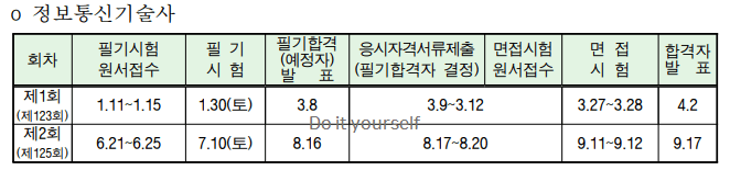- 제주 지역 정보통신기술사 시험은 1회차만 시행합니다.