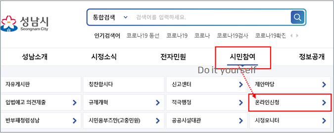성남시청 홈페이지(바로가기)에 접속합니다.