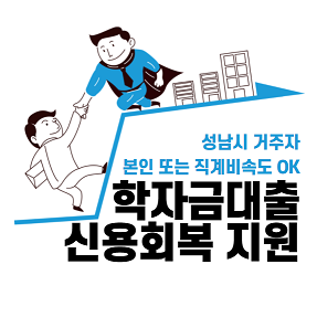 성남시에서는 성남시에 본인 또는 직계비속*이 일정기간 거주하고 학자금대출을 장기간 연체한 청년에게 신용회복 지원사업을 실시하고 있습니다.