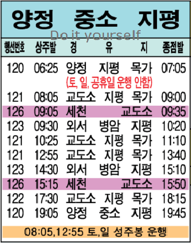 ※ 8:35, 13:45, 17:55 가천2리 운행 (연장)