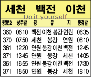 8. 세천-백전-이천 - 버스: 360, 361, 370, 371번 |