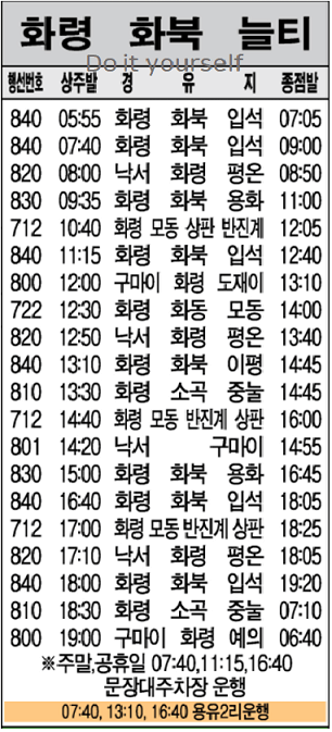 *주황: 연장노선 -> 8:05, 12:55 토,일 성주봉 운행