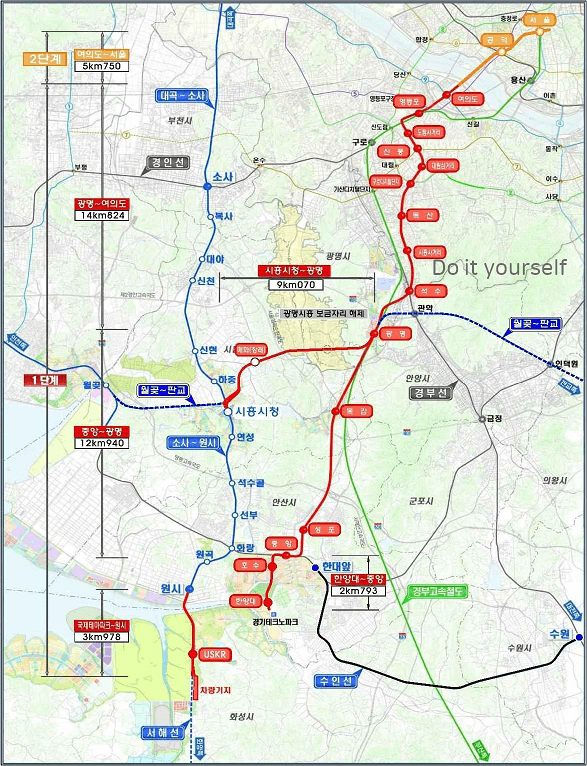 신안산선은 2단계로 나뉘어 추진됩니다.