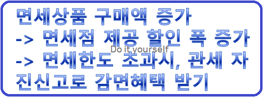 면세상품 구매액 증가 -> 면세점 제공 할인 폭 증가 -> 면세한도 관세 자진신고로 감면혜택을 받을 수 있음