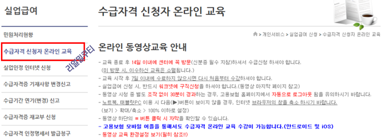 3. 온라인 수급자격 신청교육 수료 (고용보험 홈페이지에서 진행)