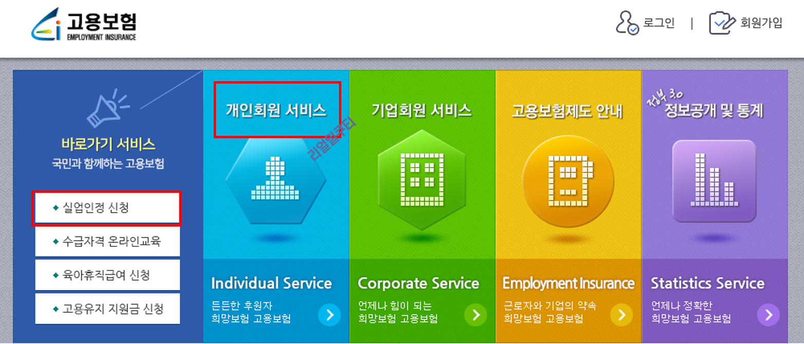 고용보험 홈페이지(https://www.ei.go.kr/ )에 접속하여