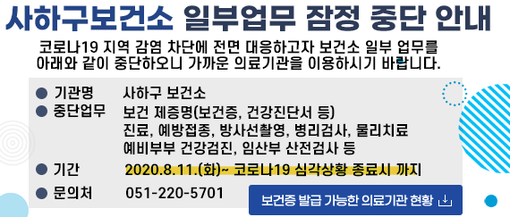 이에따라 사하구 보건소의 중단되었던 업무가 재개될 것으로 생각되는데요.