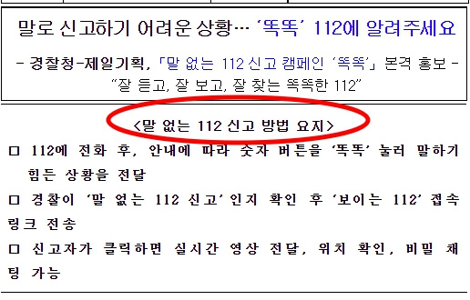 "말하기 곤란한 상황인 경우 경찰관의 안내에 따라 숫자버튼을 '똑똑' 눌러주세요"