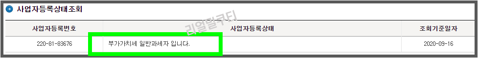 부가가치세 일반과세자라고 나오네요! 계속 사업자라는 것을 알 수가 있어요!