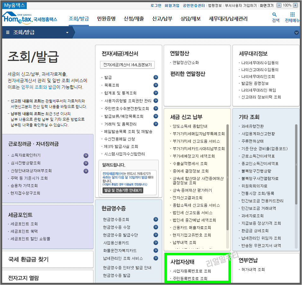 사업자상태를 봐주세요~ 그러면 사업자등록번호 및 주민등록번호 조회가 있죠!