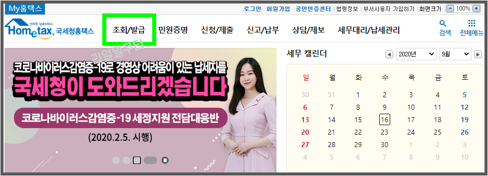 홈택스 조회/발급 카테고리를 클릭해주세요~