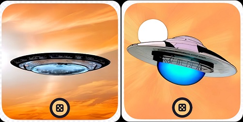 ▲여기서 이렇게 주황색 바탕에 하얀 동그라미, 회색 타원, 하늘색 타원을 그려놓고, 명령어에는 "a ufo flying during a sunset"이라고 해놨네요. 해질녘에 날아다니는 UFO라는 의미인데 과연 어떤 그림을 만들어줄까요?