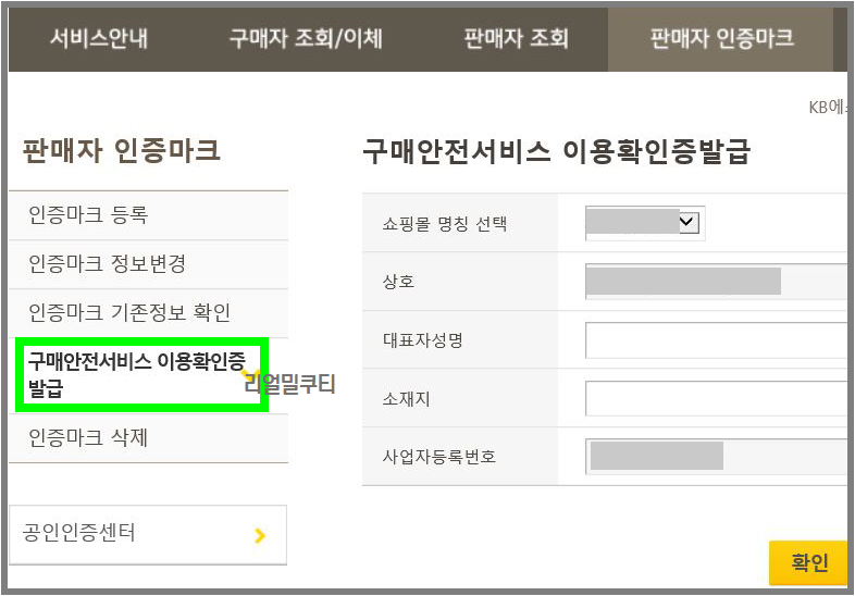 국민은행 판매자 인증마크 메뉴에서 구매안전서비스 이용확인증을 발급받으실 수 있습니다.