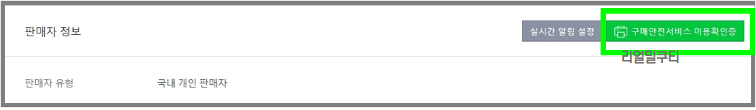 그러면 사업자정보가 나오고 여기에 나오는 정보를 정확하게 작성해줍니다. 이후 ‘판매자정보’단에서 오른쪽에 보시면 구매안전서비스 이용확인증이 보이실 겁니다.
