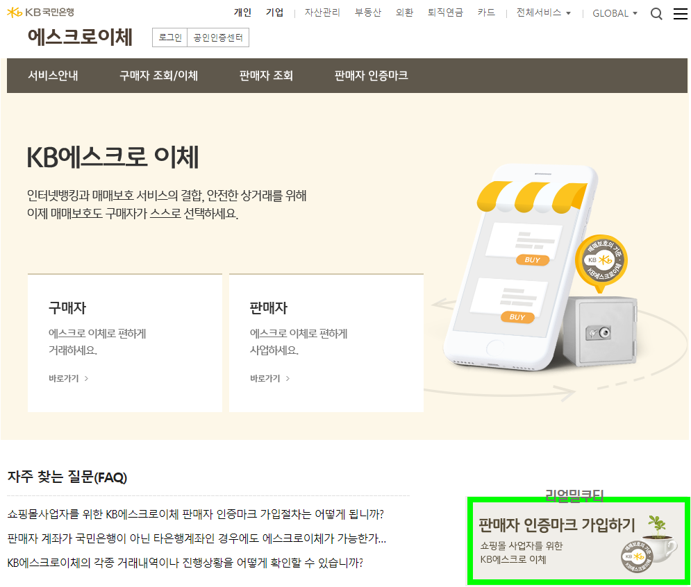 에스크로(구매안전서비스 이용확인증) 가입&발급방법 - 국민은행 본문