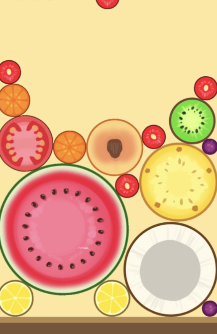 スイカのゲームをスマホ(PC/iPhone/Android)ブラウザで無料プレイする事ができるWEBサイトです。「スイカのゲーム」ルールは、フルーツを落としてくっつけてスイカを作りつづけるだけです