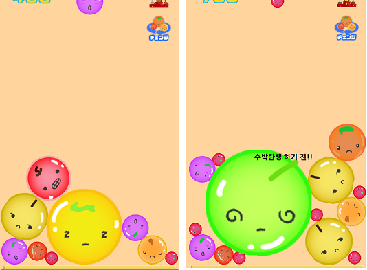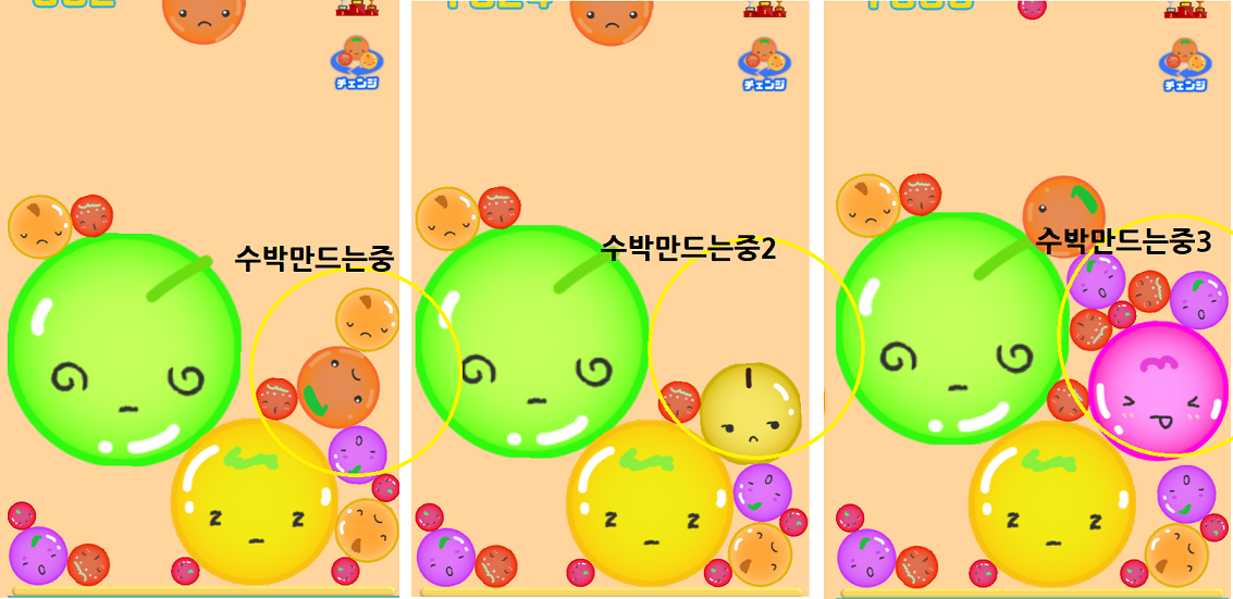 나중에 빅보스 수박을 만들어가는 게임인 것이다.