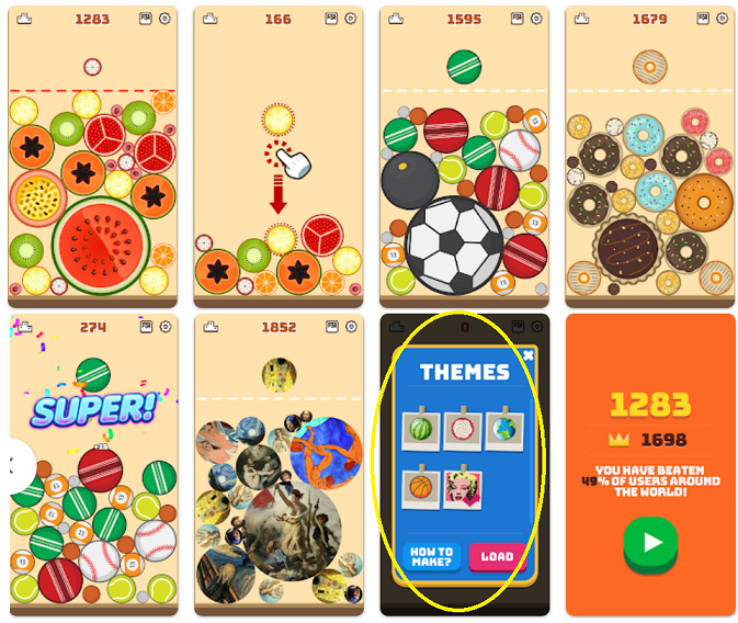 테마변경으로 사진 첨부해서 원하는 그림으로 수박게임을 만들 수 있다