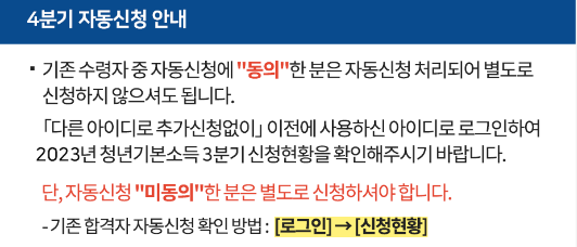 1. 2023년 10월 1일 기준 만24세 청년에 한해서, 지난 분기 미신청분 추가신청 가능